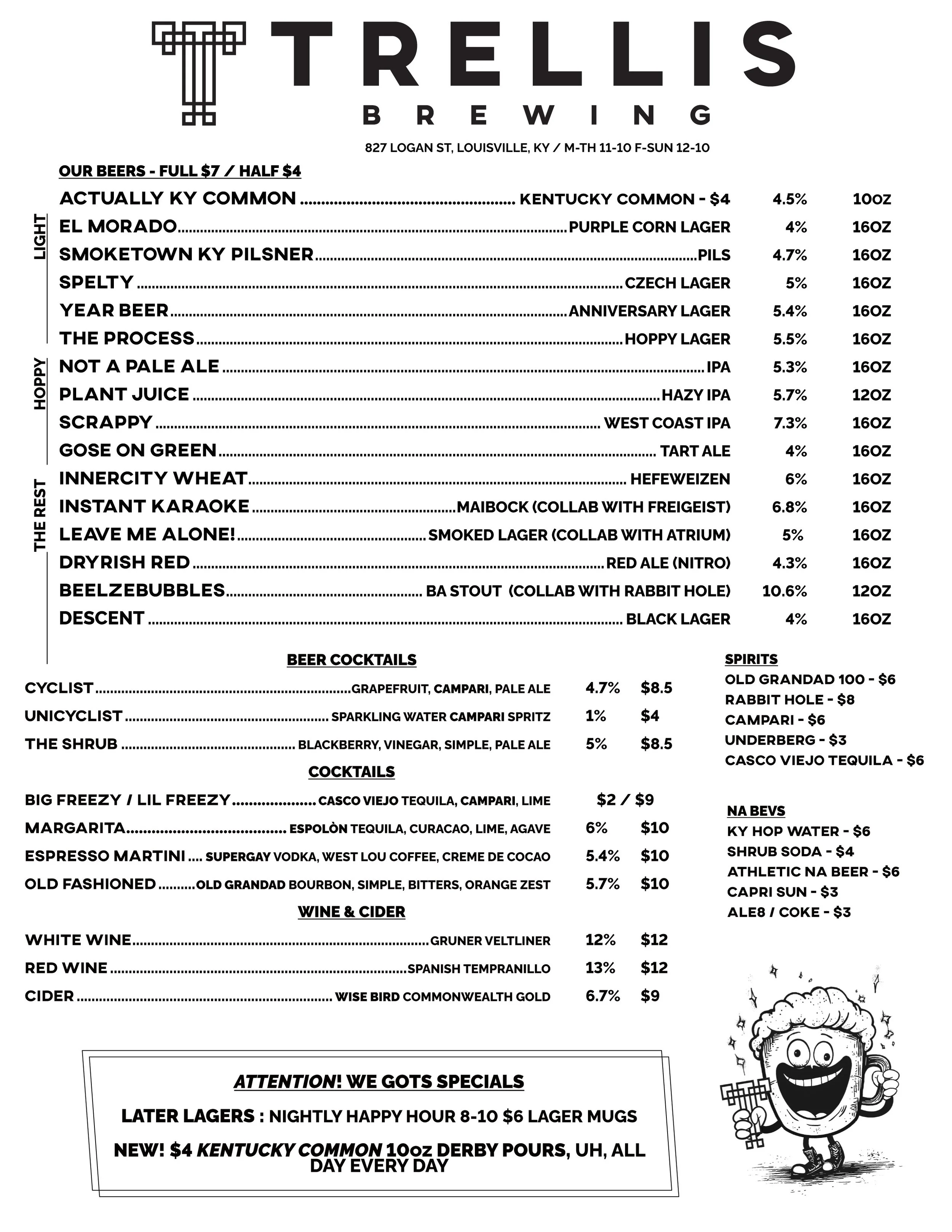 We’re always brewing something new, so the menu changes regularly— but we’ll be shocked if we don’t have something you’ll love, no matter your taste.